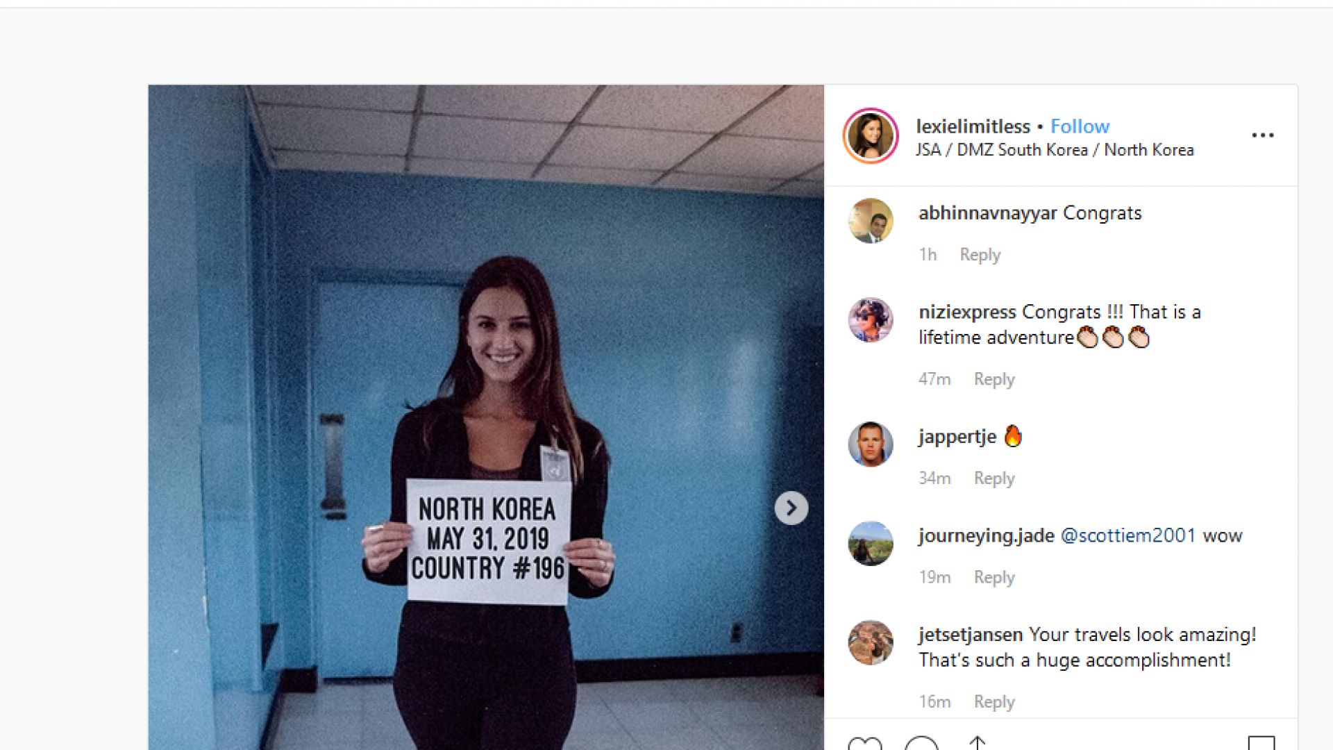 Според Лекси Олфорд най-трудната част от приключението й не било самото посещение на различните страни, а представянето на доказателства, че тя е пребивавала в тях.