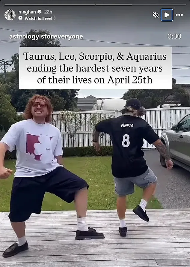Херцогинята сподели видео от страницата „Astrology is for Everyone“, в което се твърди, че зодиите Телец, Лъв, Скорпион и Водолей приключват „най-тежките седем години от живота си“ на 25 април. Родена на 4 август, Меган е зодия Лъв – и очевидно припознава посланието.