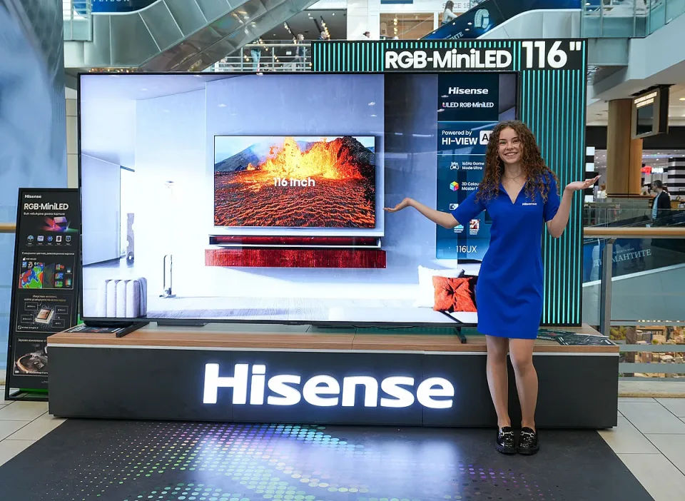 Световният технологичен лидер Hisense представя в България първия в света 116-инчов RGB MiniLED телевизор – Hisense 116UXQ. Всеки ден до 12 октомври посетителите на The Mall в София ще могат да „видят голямата картина“ и да изпитат лично въздействието на технологията, която променя всичко, което знаем за телевизията. Гостите ще имат възможност не само да станат свидетели на технологична премиера, но и да спечелят от 1000 награди в RGB цветове на място.