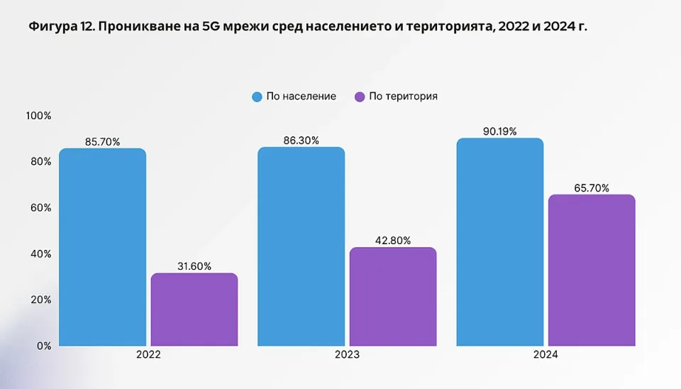 Анализът на Института за пазарна икономика подчертава, че България вече разполага с инфраструктура, която я поставя сред добре подготвените за цифровото десетилетие държави. Покритието с оптика до дома (FTTP) достига 90,4% от домакинствата при средно 69,2% в ЕС. Мрежите с много висок капацитет (VHCN), включително оптика и DOCSIS 3.1, обхващат 90,3% от домакинствата при 82,5% средно за ЕС. 5G мрежите покриват над 80% от домакинствата и над 90% от населението, а трафикът на мобилни данни почти се удвоява за две години – от 116 PB на 230 PB.