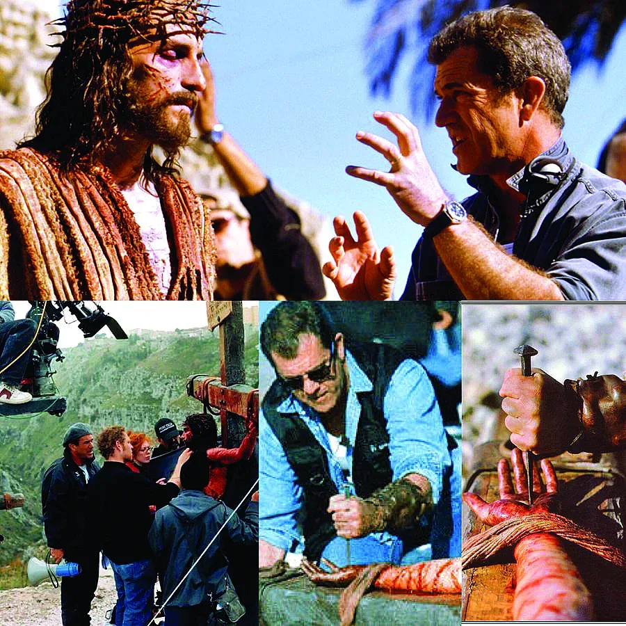 По време на снимките на "Страстите Христови" в Италия той получава ежедневни съвети, изповед и Свето причастие от местен католически свещеник с преводач. На снимачната площадка Джим преживява няколко разтърсващи момента. Той е поразен е от мълния, рамото му се изважда от тежестта на кръста - 59 кг, разболява се от пневмония и получава хипотермия. Погледът му се променя - сините му очи са покрити от кафяви лещи, носът му също е различен с помощта на грим. Тогава се говореше, че гръмотевицата на снимачната площадка може би е знак, че работата на Гибсън е одобрена свише. В сцените с бичуването, наистина ударили два пъти много силно Джим, и той от болка си измъкнал ръцете от оковите, с което раздрал десницата си доста зле. Много от членовете на екипа приели християнството (католицизма) след края на снимките. Сред покръстените е и актьорът, който играе Юда Искариотски - Лука Лионело.