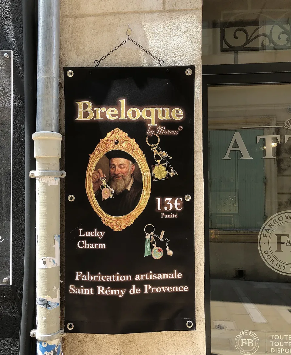 Предприемчиви бизнесмени са намерили начин да се възползват от известния си съгражданин – в туристическите брошури се предлага нощувка в леглото на Нострадамус, а лицето и името му са реклама за лотария – скритото послание е, че духът на гадателя ще ти помогне да познаеш късметлийските числа.