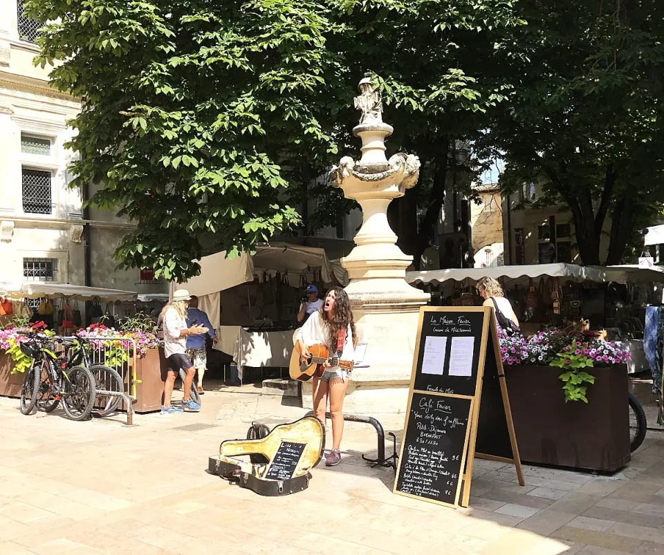 Но всяка сряда заведенията прибират тентите и масите, за да отстъпят място на Негово величество Пазара. Тогава тук се изсипва изобилието на Прованс - плодове и зеленчуци, мед, вино, зехтин, гордостта на производителите на сирена и колбаси.