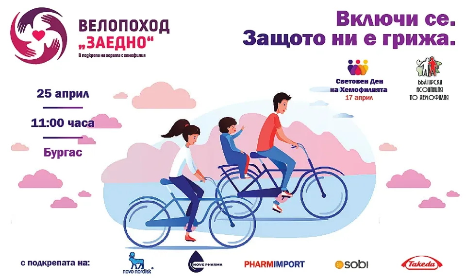 Велопоход „ЗАЕДНО“ – 25 април, 11:00 ч.: Традиционното спортно събитие ще стартира едновременно на ключови локации в София, Пловдив, Варна и Бургас.