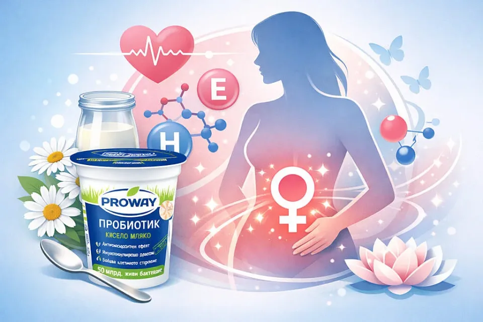 Пробиотиците, особено Lactobacillus, подпомагат баланса на вагиналната флора и леко киселинното pH, което е естествена бариера срещу инфекции. Редовната консумация на кисело мляко може да намали риска от бактериална вагиноза и кандидоза, като подпомага естествената защита на женското тяло. Това е особено важно за жени със склонност към гъбични инфекции или при нарушен баланс на микробиома.