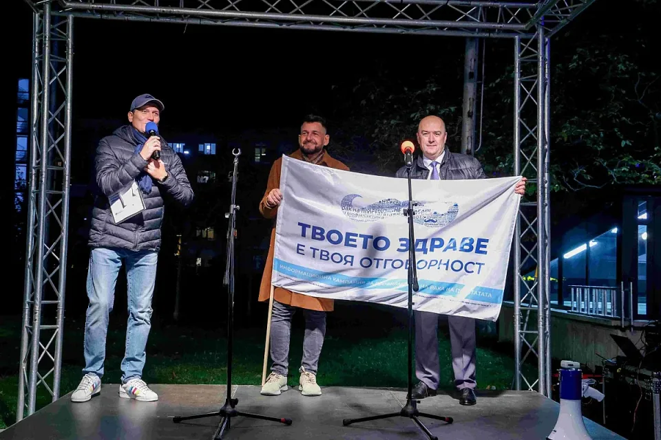 Десетки мъже и жени се обединиха около идеята, че профилактиката може да спаси живот, а кулминацията на проявата бе осветяването на сградата на НДК в синьо – символ на съпричастност и надежда.